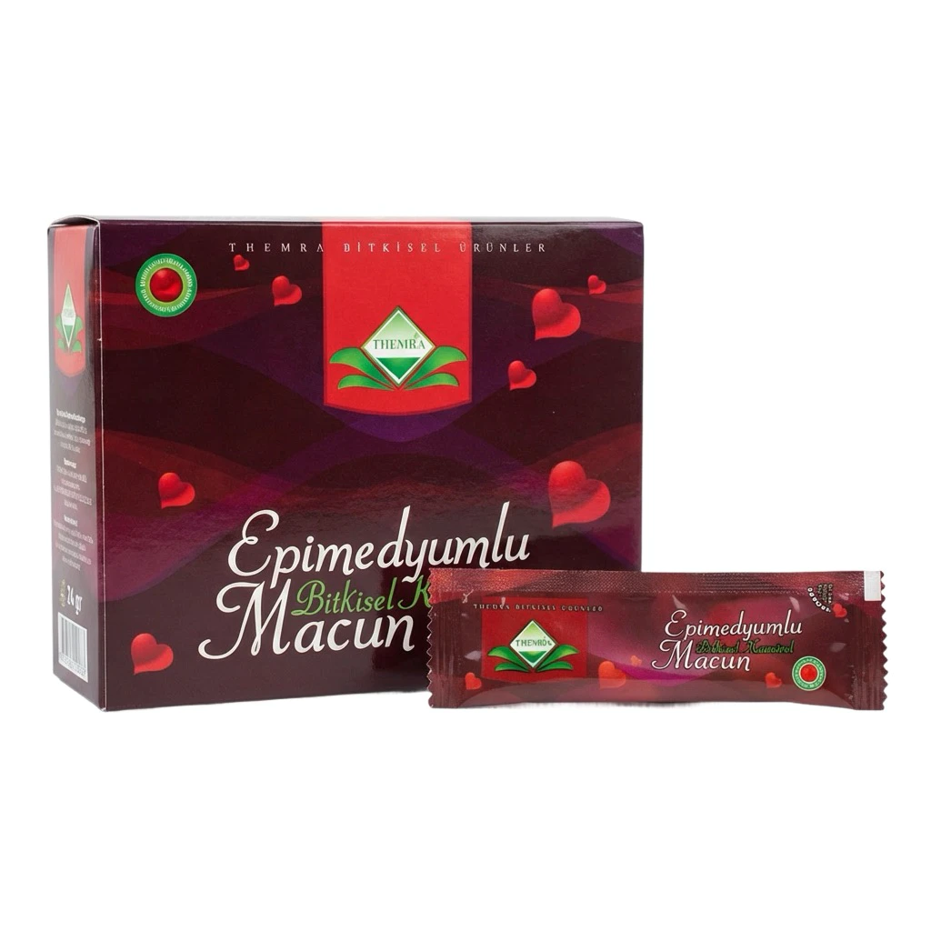 Miere afrodisiacă Macun în plicuri individuale de 10 g, formulă cu ingrediente naturale pentru energie, vitalitate și susținerea performanței.
